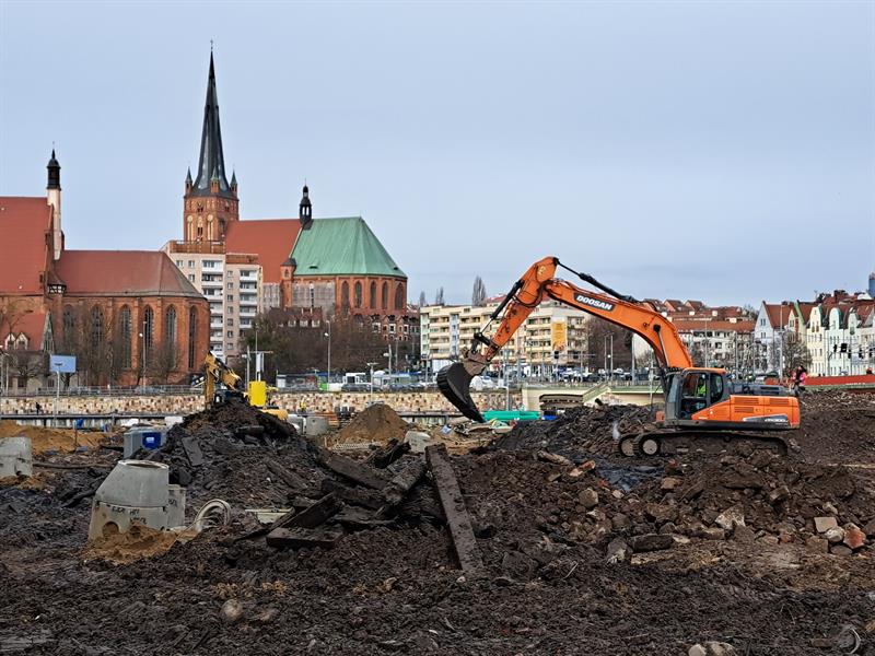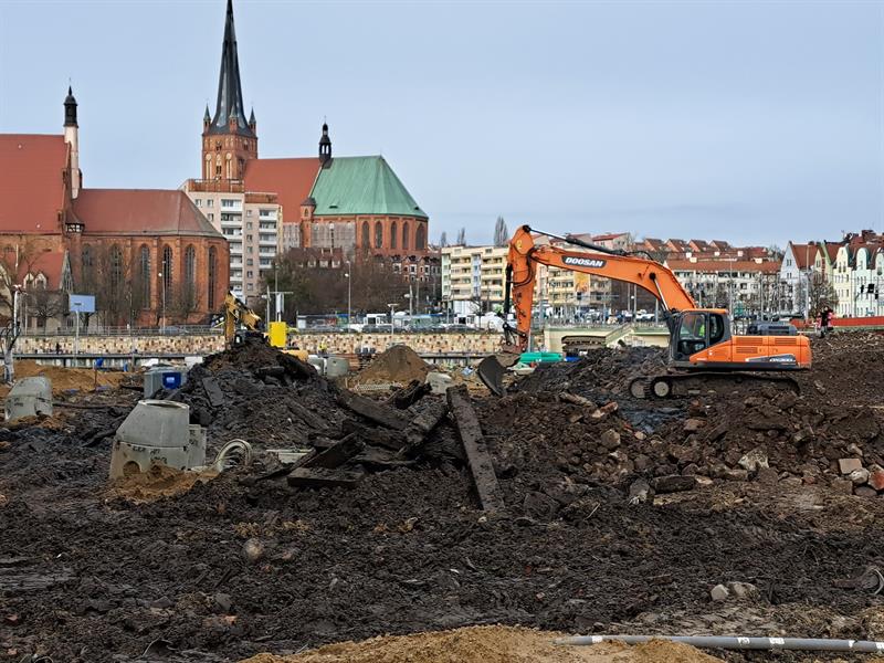 Prace niemal w tym samym czasie rozpoczęło przed paroma laty kilka firm budowlanych. Na placu budowy, nieopodal mostu kolejowego na Odrze Zachodniej niedawno pojawiła się kolejna firma, która właśnie kończy prace przy części podziemnej powstającego kompleksu budynków.