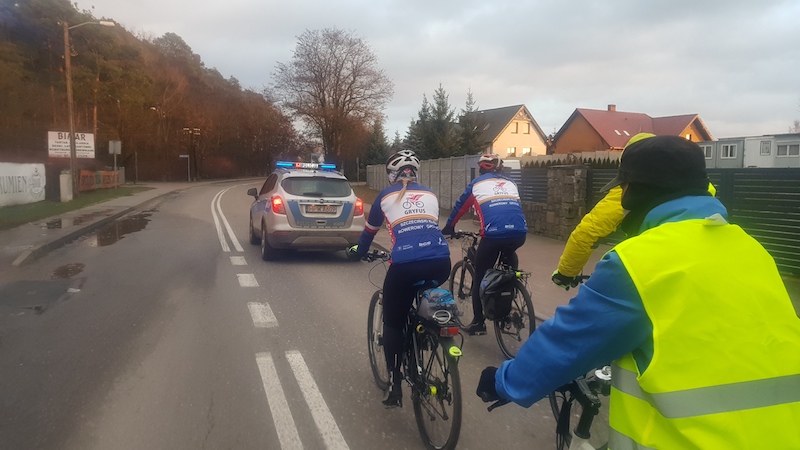 Po przybyciu na start rajdu uczestnicy otrzymali akcesoria odblaskowe – między innymi kamizelki – przekazane przez Wydział Ruchu Drogowego Komendy Wojewódzkiej Policji w Szczecinie oraz Wojewódzki Fundusz Ochrony Środowiska w Szczecinie. Instytucje te współpracowały już wielokrotnie – na przykład wspólnie dokonały zakupu pierwszych w kraju elektrycznych radiowozów. Tym razem natomiast zadbały o dobrą widoczność kolarzy, która jest szczególnie ważna w sezonie jesienno-zimowym, kiedy warunki atmosferyczne ograniczają widoczność kierowców.