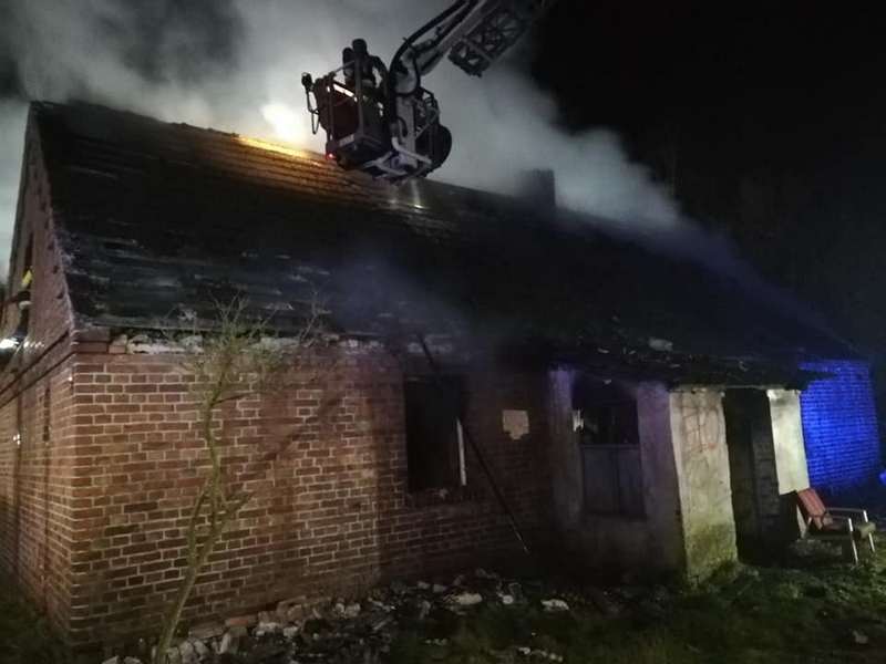 W ogniu stanął niezamieszkany od lat, stojący nieco na uboczu dom. Na miejscu pojawiło się kilka wozów strażackich, z pustostanu nie zostało jednak wiele.