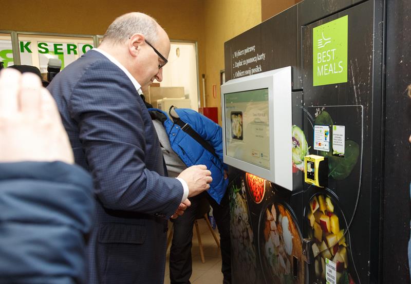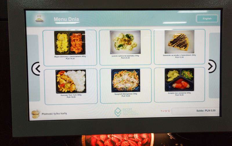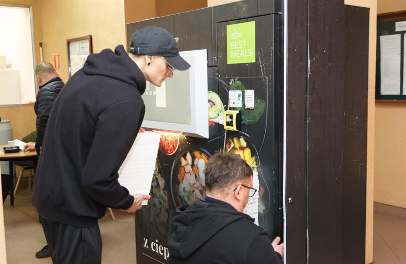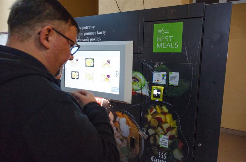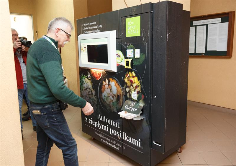 Automat dostarczyła firma Best Meals. Jego działanie polega na podgrzaniu wcześniej przygotowanych dań i wydaniu ich w opakowaniu (ale można także wybrać opcję na zimno). Maszyna przyjmuje płatności kartą. W ofercie znajduje się przynajmniej kilkanaście propozycji posiłków: dania mięsne, naleśniki, pierogi a nawet ciasta. Ceny są bardzo przystępne i dostosowane do portfela studentów. Z reguły nie przekraczają kwoty 30 złotych.