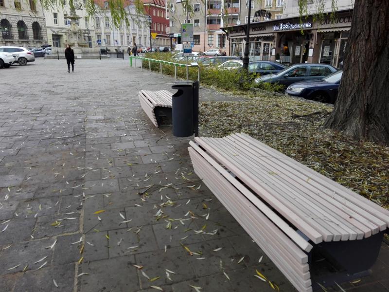 Mimo że próżno ich szukać w urzędowym Katalogu Mebli Miejskich, to designerskie ławki ustawione pl. Orła Białego podobają się szczecinianom. Natomiast wprost z Katalogu pochodzą nowe kosze na śmieci, które umieszczono tuż przy efektownych siedziskach.