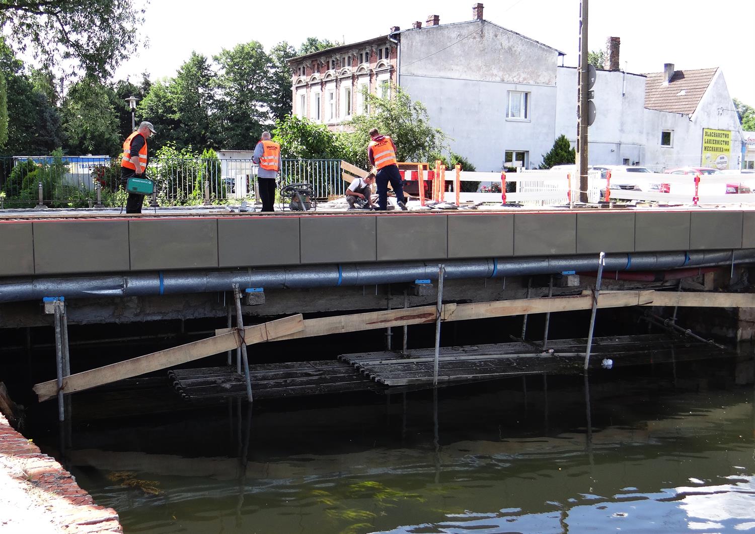 - Reprofilowana jest powierzchnia betonowa spodu płyty pomostu. Na dziś zaplanowano betonowanie płyty przejściowej, prace przy chodniku północnym. W tym tygodniu zacznie się zbrojenie i betonowanie chodnika południowego, po czym rozpocznie się układanie izolacji i warstw asfaltowych na moście i dojazdach - informuje Szymon Wasilewski, rzecznik prasowy ZDiTM.