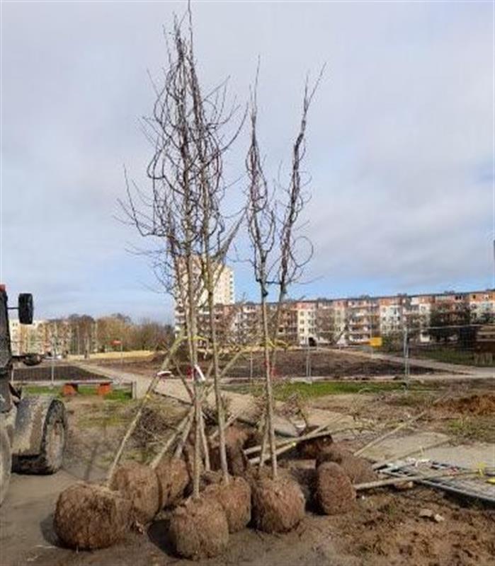 Drzewa były przywożone w kilku partiach. Są już posadzone i odpowiednio zabezpieczone. Będą zdobić park i dawać ochłodę ludziom, ale skorzystają z nich także ptaki i owady, szczególnie że wśród gatunków jest wiele kwitnących i owocujących, jak na przykład jabłonie i grusze ozdobne czy śliwy wiśniowe. A oprócz nich także buki, jarzęby, sosny, lipy i klony. Łącznie będzie to 311 drzew i ponad 1800 krzewów.