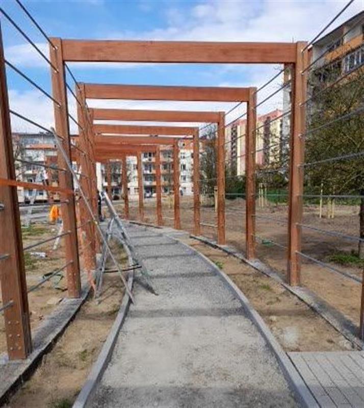 Wykonana została łąka kwietna, na której wysiano nasiona 46 gatunków roślin. Powstała również pergola, która docelowo będzie obsadzona pnączami zapewniającymi cień odpoczywającym tam mieszkańcom osiedla.