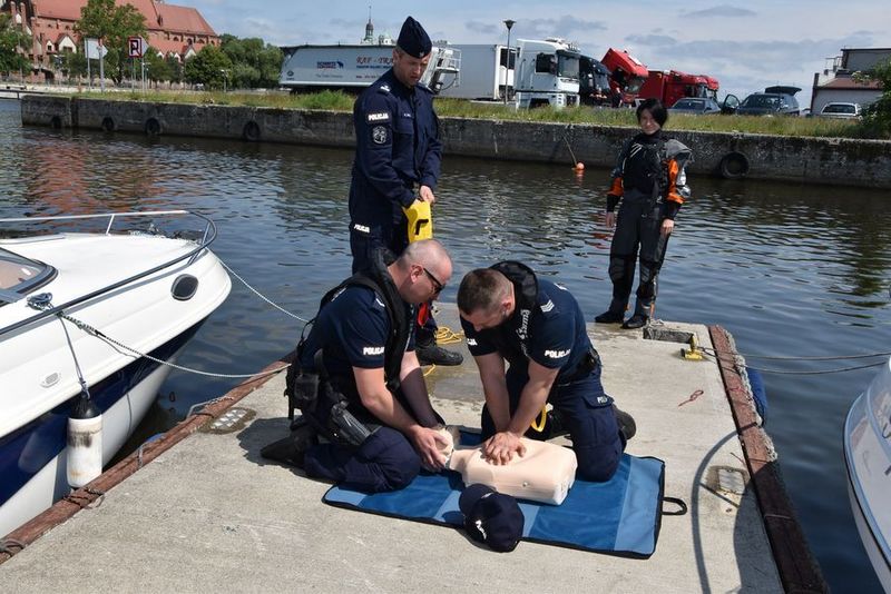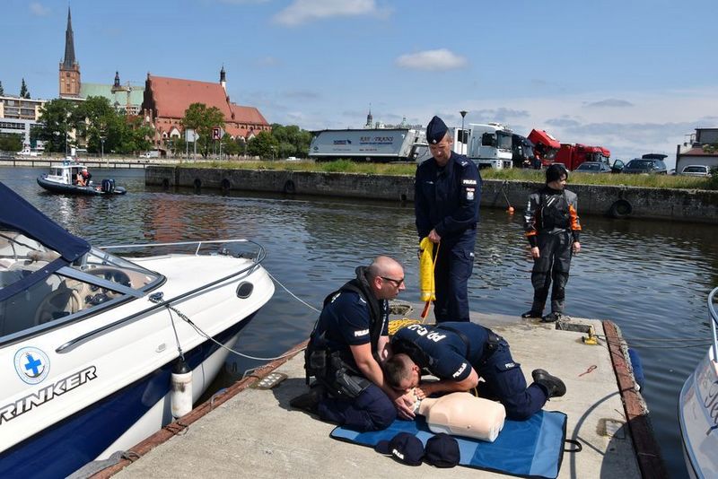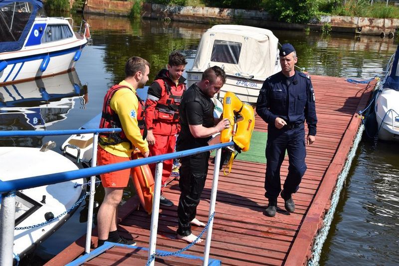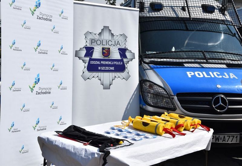 Zestawy zawierające rzutkę i automatyczną kamizelkę ratunkową otrzymali szczecińscy policjanci z oddziału prewencji. Funkcjonariusze, w ramach kolejnej edycji projektu "Bezpiecznie nad morzem", szkolą się też z udzielania pomocy na wodzie.