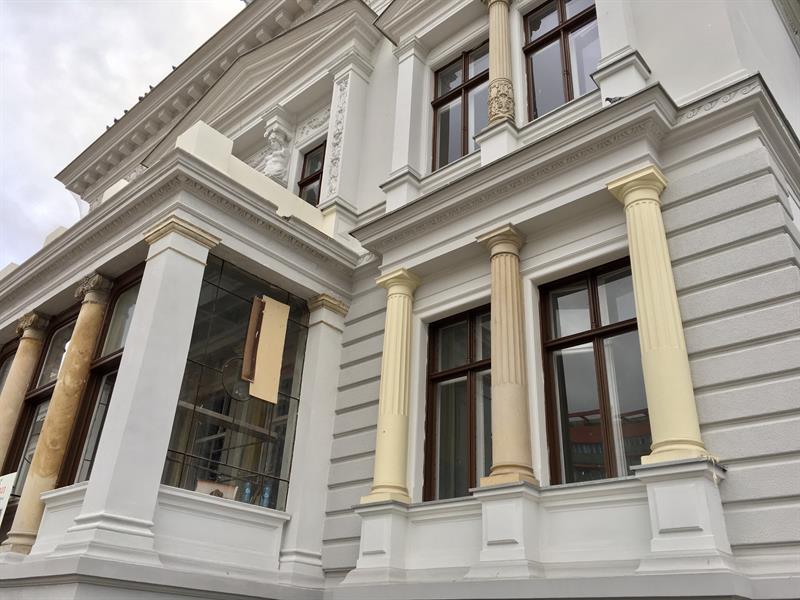 Przy skali zaniedbań - mimo tego, co na zewnątrz już widać - roboty wciąż jeszcze sporo. Prace remontowe, które trwały ponad dwa lata, wstrzymane zostały już jakiś czas temu. Co najmniej od kilku miesięcy anonse o sprzedaży pojawiają się wśród ofert biur i agencji pośredników w obrocie nieruchomościami. W lutym tablica z informacją o sprzedaży nieruchomości zawisła też na werandzie od frontu budowli.