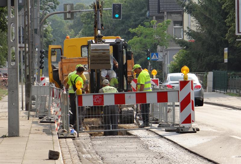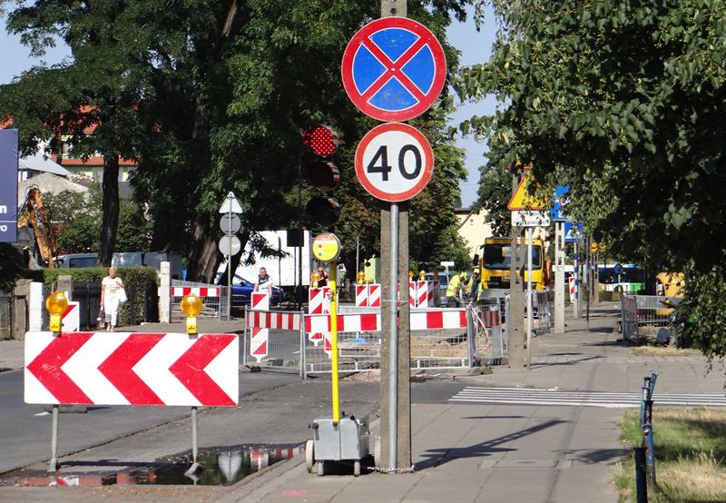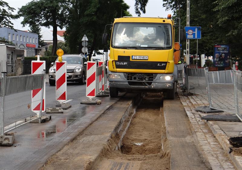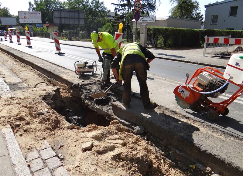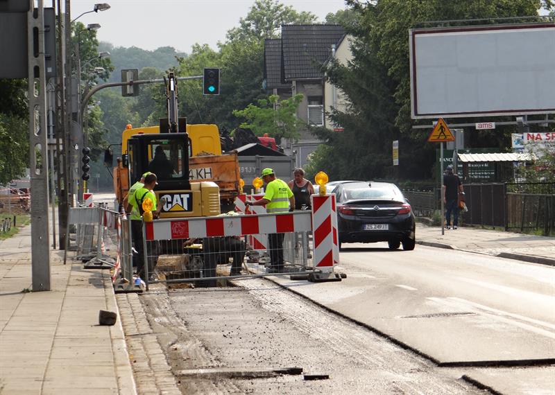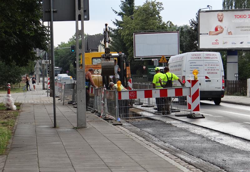 Inwestycja rozpoczęła się w lipcu od okolic ronda Ułanów Podolskich. Wcześniej prace nie kolidowały z ruchem aut, bo tam instalacja wymieniana była w pasie szerszego pobocza wzdłuż parkingu, który znajduje się przed sklepem Lidla. Aktualnie kończone są prace w wykopie na długości ok. 45 m w pobliżu skrzyżowania z ul. Żołędziową. Do połowy pasa ruchu sfrezowana została dotąd nakładka w stronę skrzyżowania z ul. Sanatoryjną, gdzie prowadzone będą kolejne wykopy.