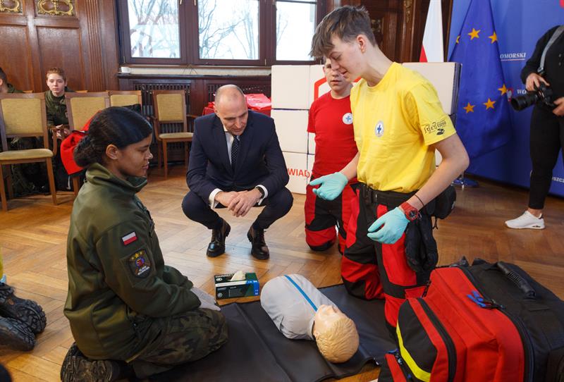 Poza tym z okazji Europejskiego Dnia Numeru Alarmowego w siedzibie wojewody uczniowie 7 Liceum Ogólnokształcącego w Szczecinie uczyli się od ratowników Wodnego Ochotniczego Pogotowia Ratunkowego, jak udzielać pierwszej pomocy. ©℗
