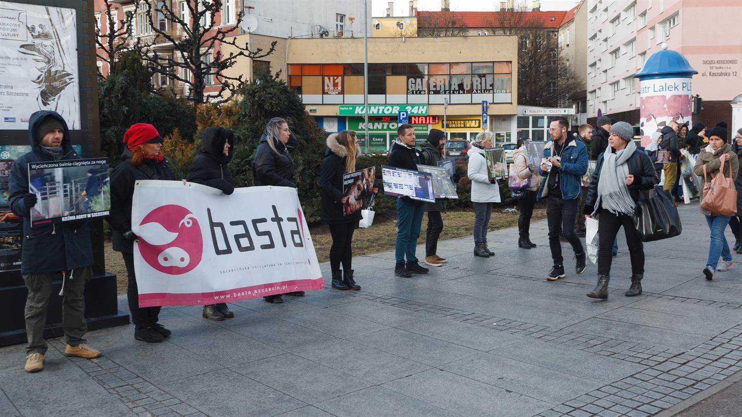 Jedyną drogą, przynajmniej do ograniczenia tej fali przemocy, jest weganizm - o czym przekonywali przechodniów aktywiści BASTA! Informowali: „Weganizm to styl życia polegający na minimalizacji cierpienia zwierząt. Wiąże się przede wszystkim ze zmianą diety na roślinną, rezygnacją z futer, odzieży skórzanej, kosmetyków testowanych na zwierzętach czy bojkotowaniem cyrków ze zwierzętami, jak również innych form wykorzystywania zwierząt. Bycie weganinem czy weganką wcale nie jest trudne – spróbuj: zostanwege.pl".