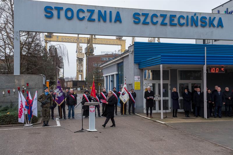 Beata Kempa, doradca prezydenta RP Andrzeja Dudy, przeczytała list od głowy państwa. Prezydent przypomniał, że w grudniu 1970 komunistyczna władza wysłała przeciwko głodnym, poniżonym robotnikom milicję i wojsko, transportery opancerzone i czołgi. Mimo to Szczecinem przez pewien czas de facto rządzili protestujący. Miasto nazwano republiką szczecińską, bo funkcjonowało poza kontrolą reżimu. Ostatecznie komuniści krwawo zdławili strajk.