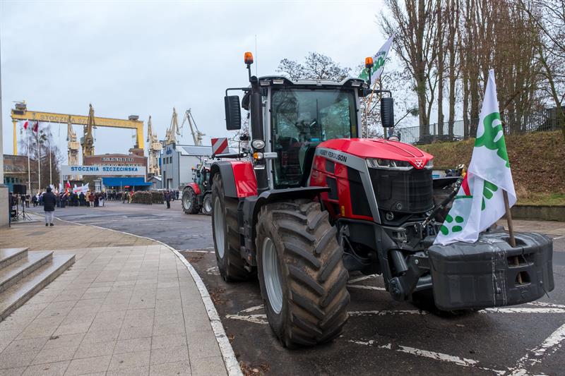 Podczas uroczystości pojawili się także rolnicy. Hasła na ich traktorach brzmiały "Ustawa łańcuchowa = upadek polskiej hodowli", "Mercosu = upadek polskiego rolnictwa".