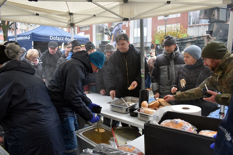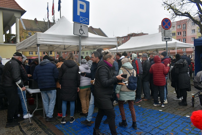 Po uroczystościach mieszkańcy, na placu przy ratuszu, mogli raczyć się grochówką. Chętnych nie brakowało. Przed kotłem z gorącą zupą ustawiła się długa kolejka zmarzniętych stargardzian.