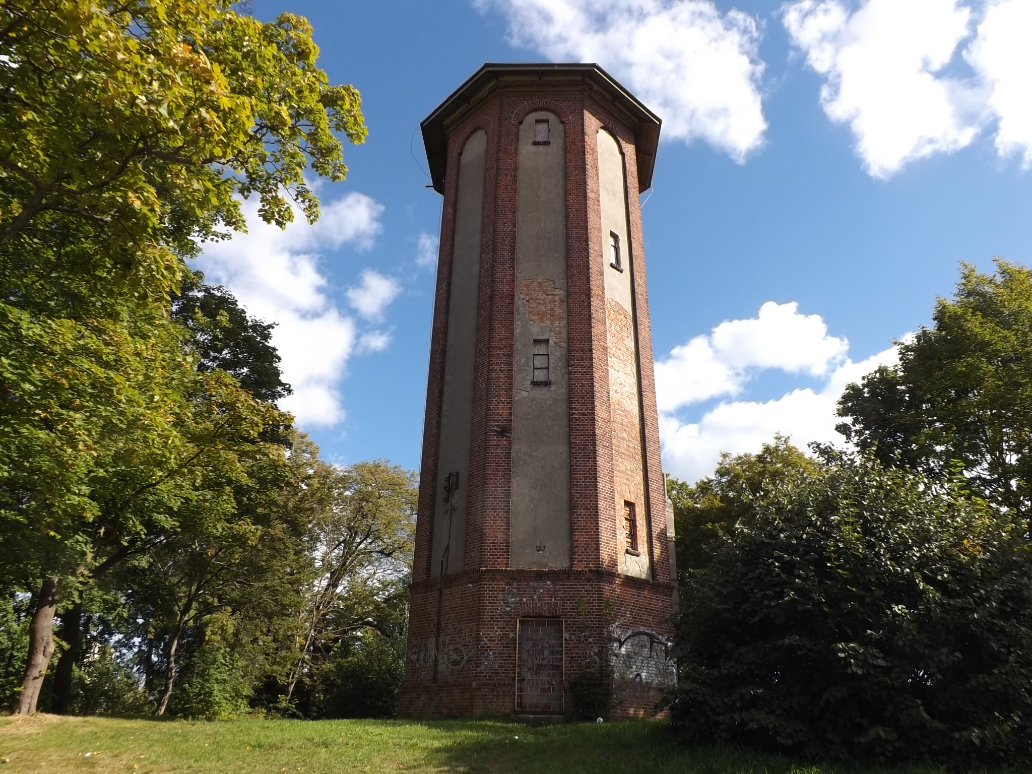Budowę wieży w jej pierwotnym kształcie ukończono w 1912 roku. W 2012 roku miasto odkupiło ją z rąk prywatnych. Zaraz potem zdemontowano ponad 20-tonowy zbiornik na wodę, który ze względu na stan techniczny, zagrażał całej budowli. Po zdjęciu zbiornika wieżę przykryto prowizorycznym daszkiem i tak stoi do dziś. ©℗