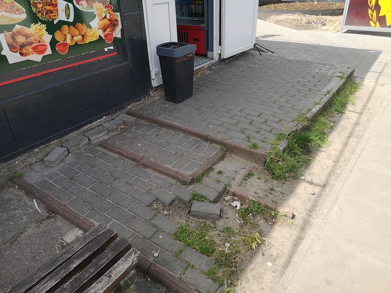 Całość wygląda dziś bardzo ładnie, ale jakoś nie pasuje do tego miejsca stojąca tu obskurna budka z kebabem. Wokół niej pełno jest chwastów i trawy rosnącej na chodniku pomiędzy płytkami, której właściciel nie potrafi jakoś wyplewić. Wchodząc do lokalu trzeba uważać, by nie połamać sobie nóg, gdyż kostka brukowa leży luzem, ale tego już RO nie musiała naprawić z pieniędzy z budżetu obywatelskiego. Punkt gastronomiczny jest bowiem prywatną własnością i czas najwyższy by właściciel zaprowadził tu porządek.