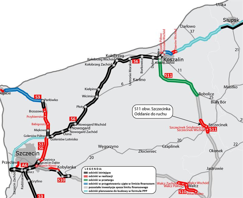 Obecnie sieć dróg ekspresowych i autostrad w naszym kraju liczy 3 993 km. Te 12 km obwodnicy Szczecinka pozwoli przekroczyć 4 000 kilometrów dróg szybkiego ruchu. Docelowa sieć dróg ekspresowych i autostrad ma wynosić ponad 8000 kilometrów – osiągnęliśmy półmetek i kolejne inwestycje przed nami. W ciągu najbliższych 2-3 lat powinniśmy przekroczyć barierę 5000 km. Obecnie w realizacji mamy jeszcze około 1100 km dróg, a w przetargach kolejne blisko 350 km. Dalsze odcinki objęte są różnymi etapami prac przygotowawczych.