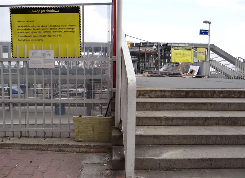 Od najbliższej niedzieli, 1 września, podróżnych, którzy korzystają z dworca PKP Szczecin Główny, czekają kolejne zmiany związane z trwającą tam przebudową. Do użytku zostanie oddany po modernizacji peron 3 stacji oraz większa część odremontowanej, zadaszonej, z nowymi dojściami i windami starej kładki nad torami z wejściem od ul. Krzysztofa Kolumba. Równocześnie całkowicie zostaną wyłączone z eksploatacji peron 4 i krótki fragment kładki z dojściem do niego i pozostałych peronów od strony ul. Stefana Czarnieckiego.