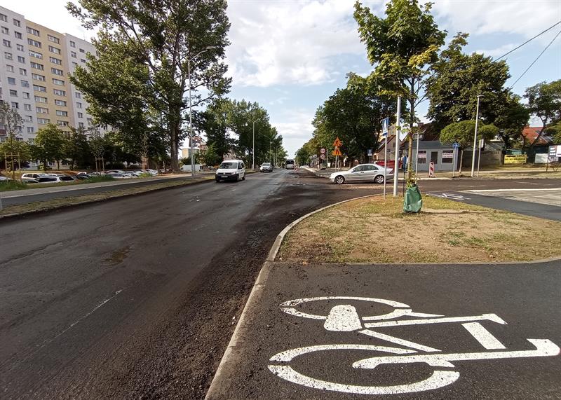 Dotąd zerwana została też stara nakładka jezdni ul. Łubinowej od wysokości przystanku „Sanktuarium" od strony skrzyżowania z ul. Andrzeja Struga aż do minironda przy skrzyżowaniu z ul. Zofii Nałkowskiej na wysokości pętli Słoneczne.
