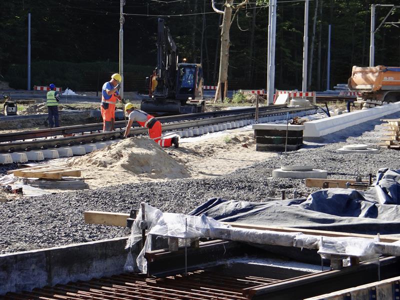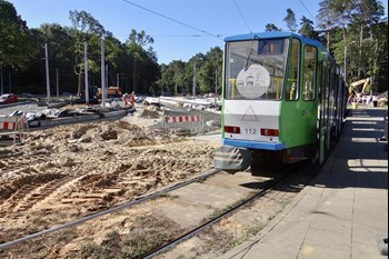 Postęp prac przy budowie nowego węzła komunikacyjno-drogowego u zbiegu al. Wojska Polskiego z ulicami Emila Zegadłowicza, Hieronima Kupczyka i Miodową wkracza w kolejną fazę. Jak dotąd składy linii nr 1 i 9 mogą jeszcze dojeżdżać do pętli w jej dotychczasowym, choć już przeobrażonym nieco kształcie, torem dojazdowym i pozostawionym do nawrotu jednym ze starych torów wyjazdowych. Drugi z nich, ten bliżej placu, gdzie powstają teraz nowe perony z odcinkami torów, już wiosną został rozebrany. Teraz i tę ostatnią część utrzymywanej i wyeksploatowanej infrastruktury czeka demontaż.