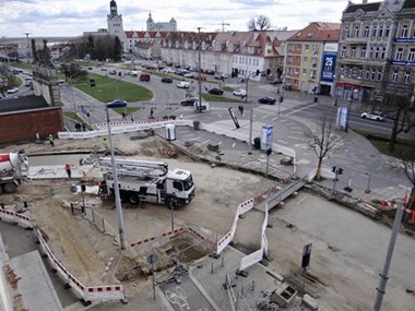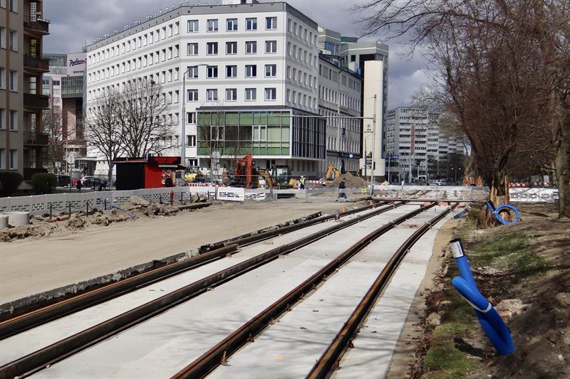 Tempo prac przy wymianie na nową całej infrastruktury torowiska tramwajów w centrum Szczecina na odcinku ul. Jana Matejki od skrzyżowania z ul. Marszałka Józefa Piłsudskiego przez pl. Hołdu Pruskiego i wzdłuż pl. Żołnierza Polskiego od strony deptaka sprawia, że krajobraz na całym placu przebudowy zmienia się niemal jak w kalejdoskopie. Nie będzie przesadą stwierdzenie, że nawet z dnia na dzień. Co oznacza czasowe utrudnienia w ruchu, a te kolejne już od najbliższej soboty, 10 kwietnia. Najważniejsza z tych najnowszych zmian to zamknięcie dla samochodów przejazdu al. Niepodległości przez pl. Żołnierza Żołnierza w al. Wyzwolenia w kierunku pl. Rodła.