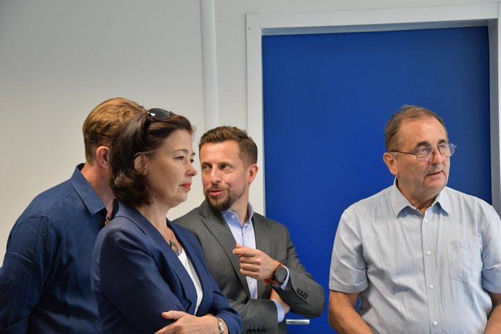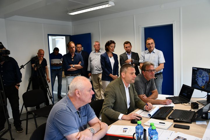 Podczas odbioru sprawdzane są poszczególne partie maszyny, została uruchomiona tarcza drążąca i pozostałe elementy. Maszyna oznakowana jest logotypem miasta - Stawą Młyny.