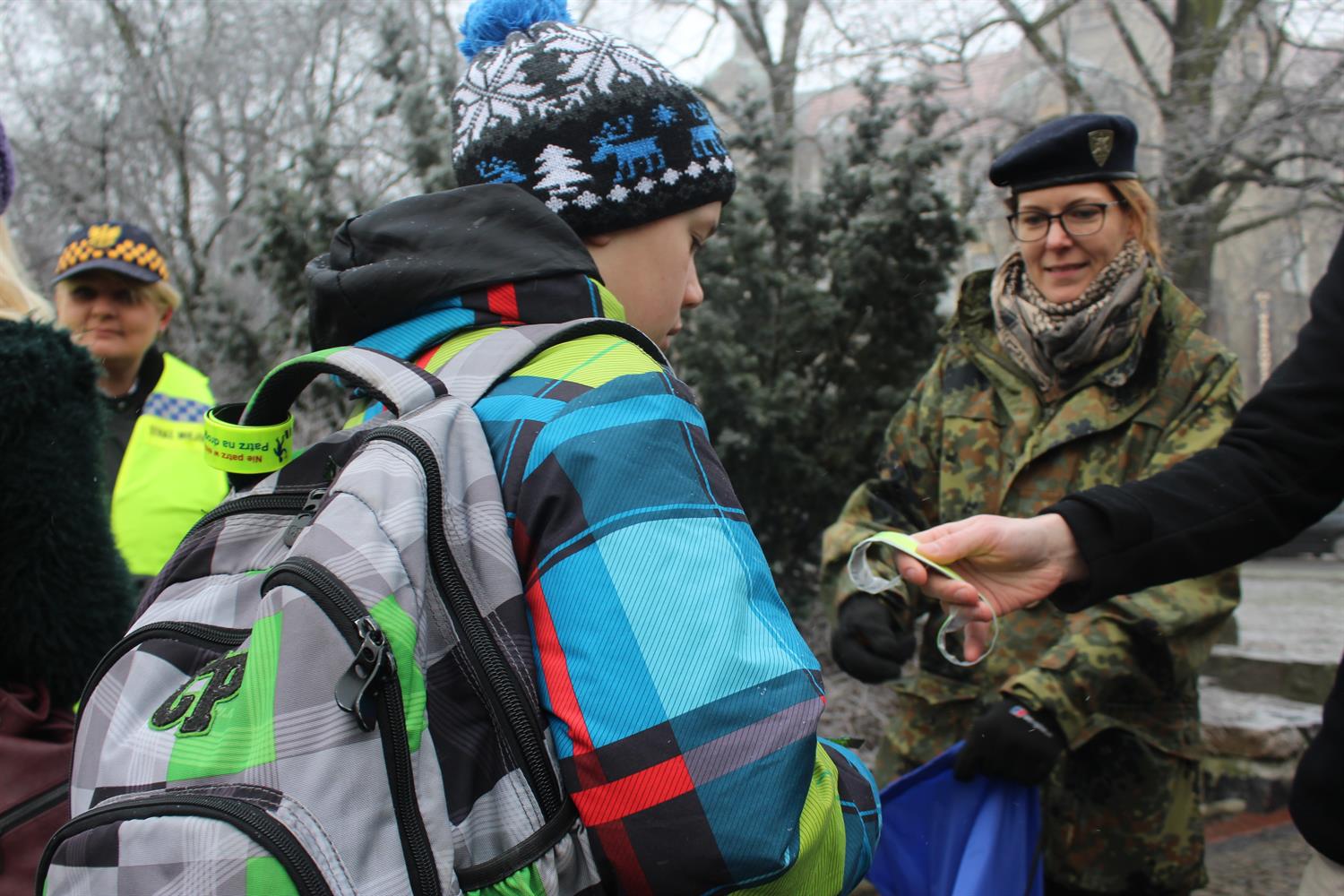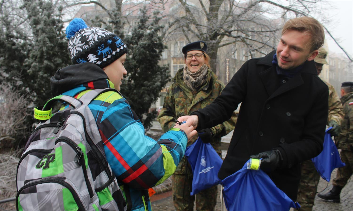 Ok. 40 minut wystarczyło, by w walentynkowy poranek rozdać ponad tysiąc elementów odblaskowych. Przechodnie mogli je otrzymać na pl. Grunwaldzkim w Szczecinie. W akcji wzięli udział przedstawiciele Urzędu Miasta, funkcjonariusze szczecińskiej drogówki, Straży Miejskiej, żandarmerii oraz żołnierze Wielonarodowego Korpusu Północ–Wschód.
