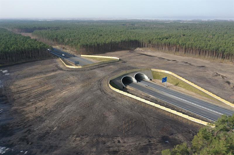 – Inwestycja obejmuje dostosowanie istniejącej dwujezdniowy drogi z dwoma pasami ruchu do standardu autostrady. Starą poniemiecką betonową nawierzchnię drogi zastąpiono nową bitumiczną, a szerokość jezdni powiększono o pas awaryjny. Trasa została wygrodzona, a na odcinku przebiegającym przez lasy powstało duże przejście górne dla zwierząt – przypomina Mateusz Grzeszczuk, główny specjalista ds. komunikacji społecznej w szczecińskim oddziale GDDKiA.
