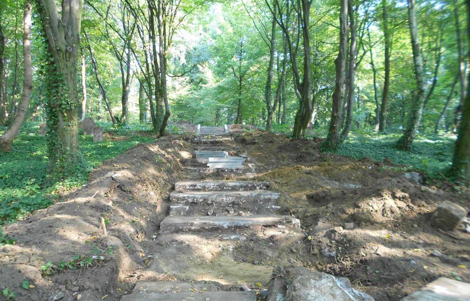 W parku przy ul. Ostrowskiej odkopano zabytkowe schody. Zostaną wyremontowane.