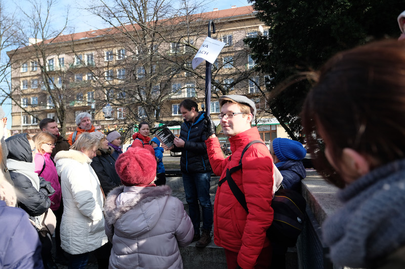 - Znajdujemy się na jednym z pierwszych odbudowanych placów w Szczecinie, placu Lotników, wokół którego stoją socrealistyczne kamienice – podkreślił Przemek Głowa. - Jako przewodnik, który od małego uczy się historii miasta, mogę śmiało powiedzieć, że teraz mamy bardzo dużo materiałów dotyczących Szczecina, które każdy może przeczytać. Kiedyś tego nie było.