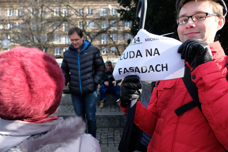 Dzięki zwiedzaniu z Przemkiem uczestnicy dowiedzieli się, gdzie znajdował się pierwszy hotel w Szczecinie, czyje „głowy” znajdują się na budynku Muzeum Narodowego oraz ile razy i dlaczego przesuwana była fontanna Orła Białego. Zdradził także, jak znajduje wszystkie podobne historie oraz na czym polega wyszukiwanie informacji i codzienna praca przewodnika.
