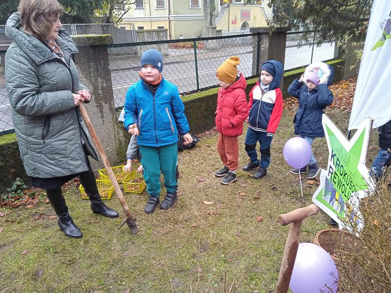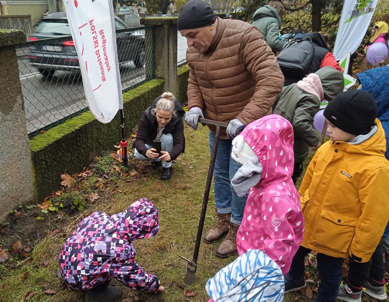 Przedszkolaki nie miały dość siły, żeby „krokuśnikami" robić w ziemi miejsce pod kwiatowe cebulki. Wyręczyli ich inicjatorzy przedsięwzięcia, czyli radna Maria Myśliwiec oraz Sylwiusz Mołodecki z „Zielonych Ogrodów". Natomiast przedszkolaki… do sadzenia krokusów stanęły w długiej kolejce.