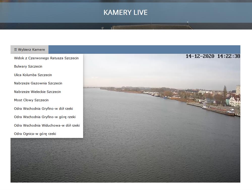 Przez cały czas na stronie internetowej https://nawodzie.uzs.gov.pl/kamery-live dostępny jest widok na Odrę: z Czerwonego Ratusza, przy szczecińskich bulwarach, w rejonie ul. Krzysztofa Kolumba, przy nabrzeżu gazowni, nabrzeżu Wieleckim, w okolicy mostu Cłowego, w Gryfinie (w górę oraz w dół Odry Wschodniej), w Widuchowej (w dół Odry Wschodniej) oraz w Ognicy (w górę Odry).