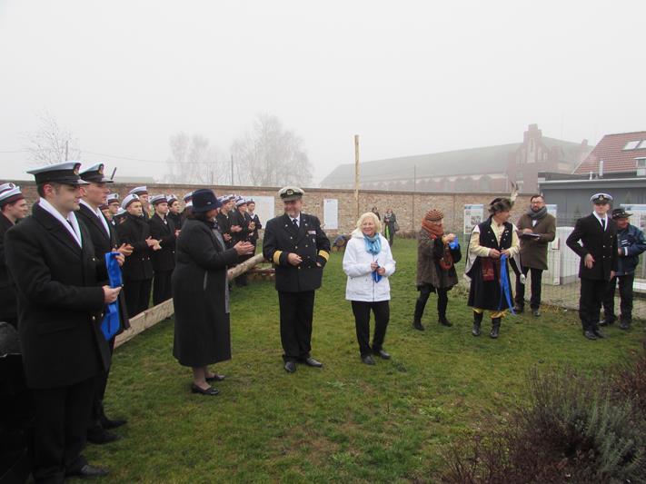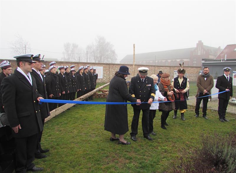 Na zdjęciu: Na skwerze Kapitanów wydzielone miejsce poświęcone Odrze. Plac otworzyli, przecinając wstęgę, osoby zaangażowane w jego utworzenie oraz promujące rzekę (od lewej): Laura Hołowacz – prezes CSL, kapitan żeglugi wielkiej i śródlądowej Włodzimierz Grycner (komodor Flisów Odrzańskich), dr Elżbieta Marszałek, red. Krystyna Pohl oraz retman Mieczysław Łabęcki – flisak z Ulanowa.