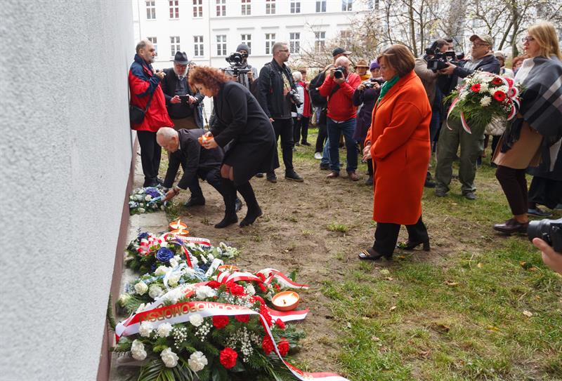 Wydarzenie zakończyła modlitwa odmówiona przez Michaela Schudricha oraz złożenie kwiatów i zniczy pod ścianą, na której widnieje mural. Przed wojną, niemal dokładnie w tym samym miejscu stała spalona przez nazistów synagoga.