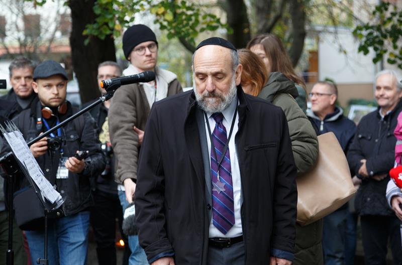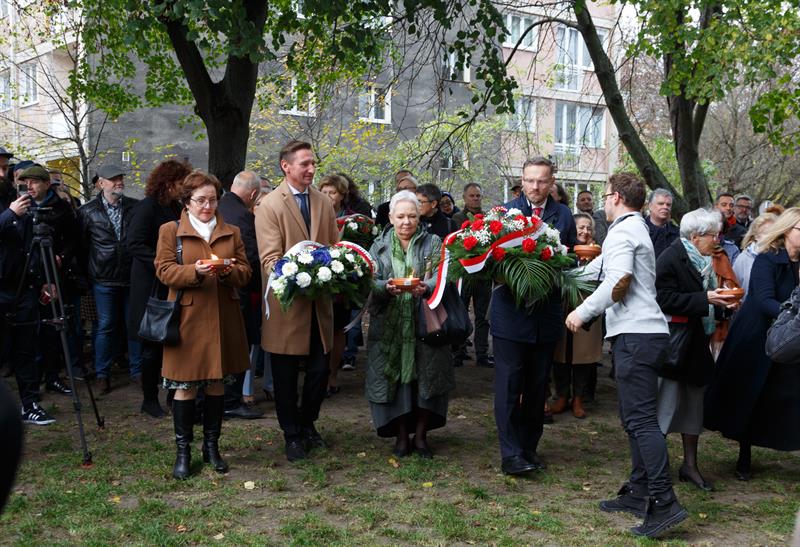 Poza oficjalną prezentacją muralu, złożono także kwiaty i zapalono znicze. Gościem wydarzenia był rabin Michael Schudrich, który odmówił modlitwę. Fot. R. PAKIESER