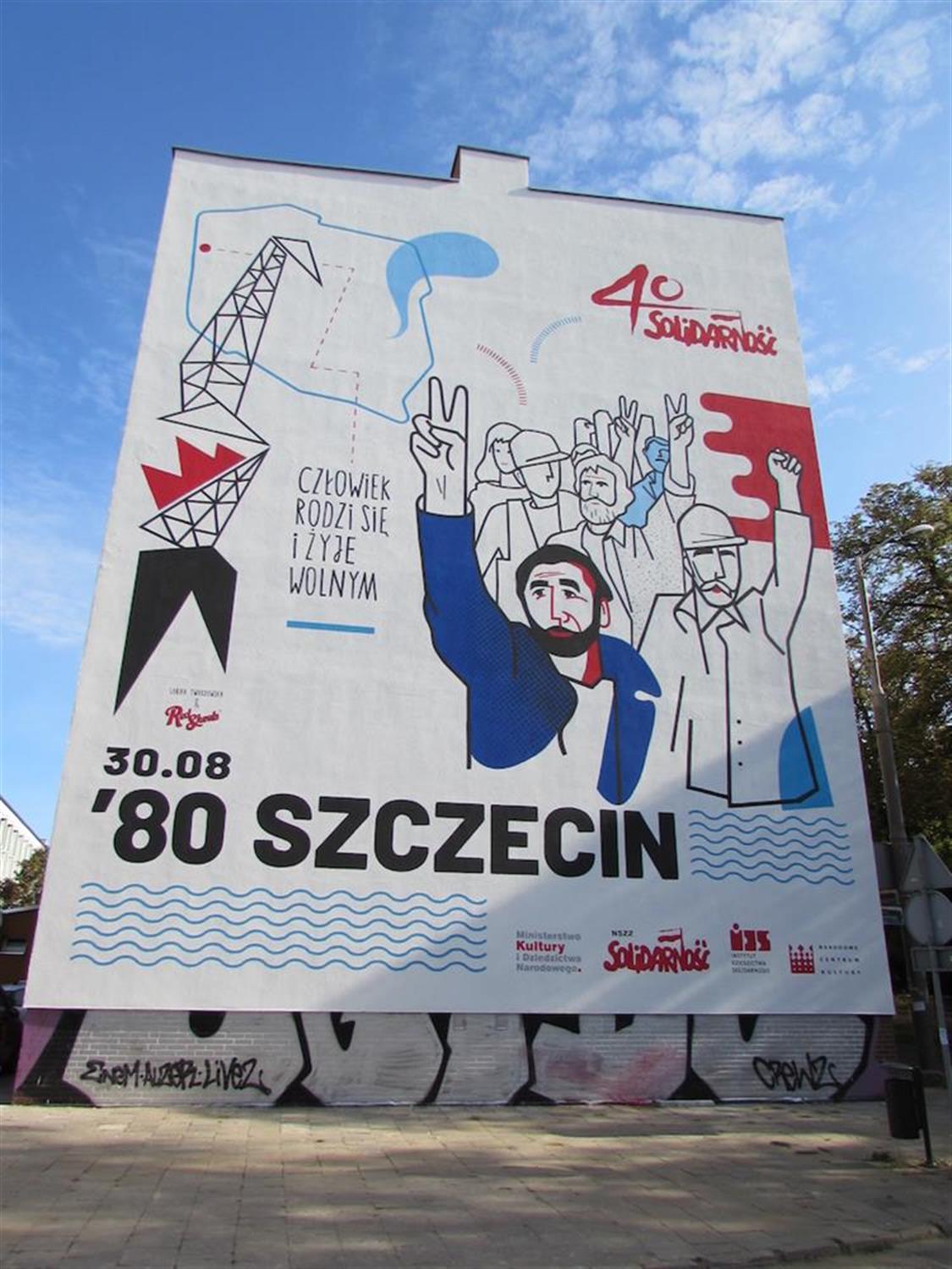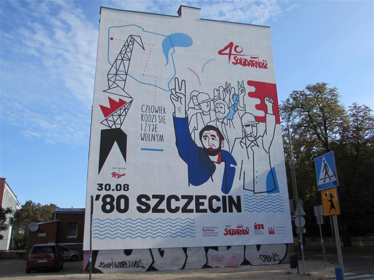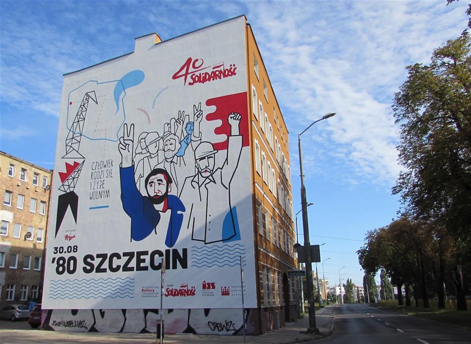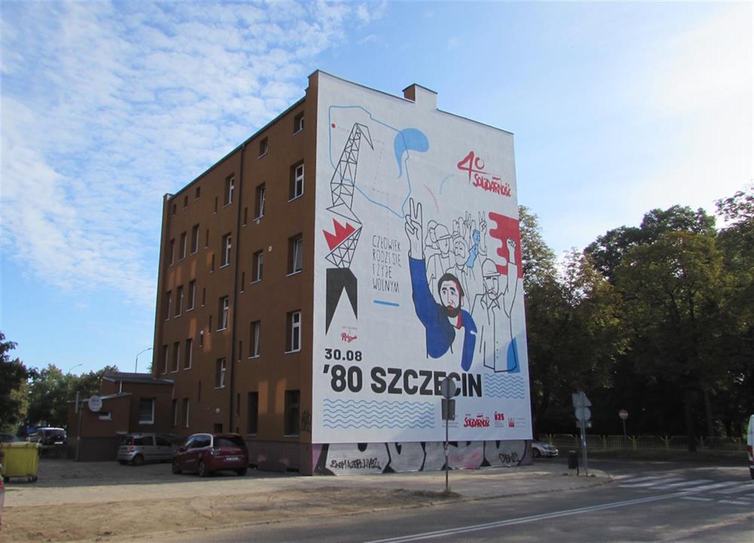 Kolejny patriotyczny mural powstał w Szczecinie. Tym razem upamiętnia wydarzenia Sierpnia 1980 roku. Namalowano go na ścianie kamienicy na Pomorzanach, przy. al. Powstańców Wlkp. 22.