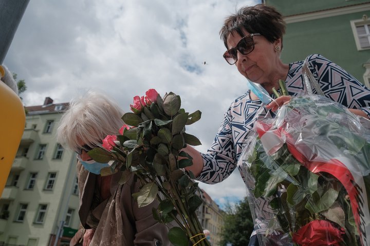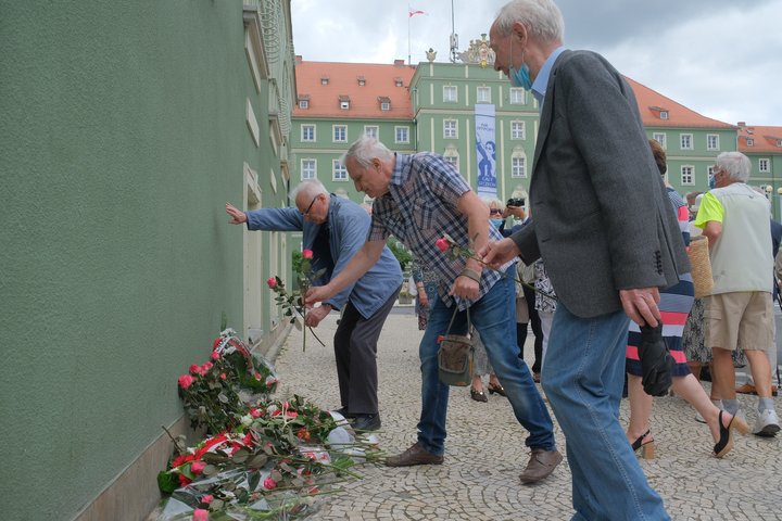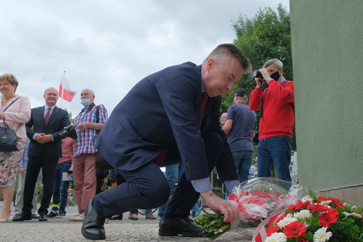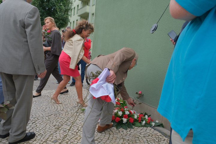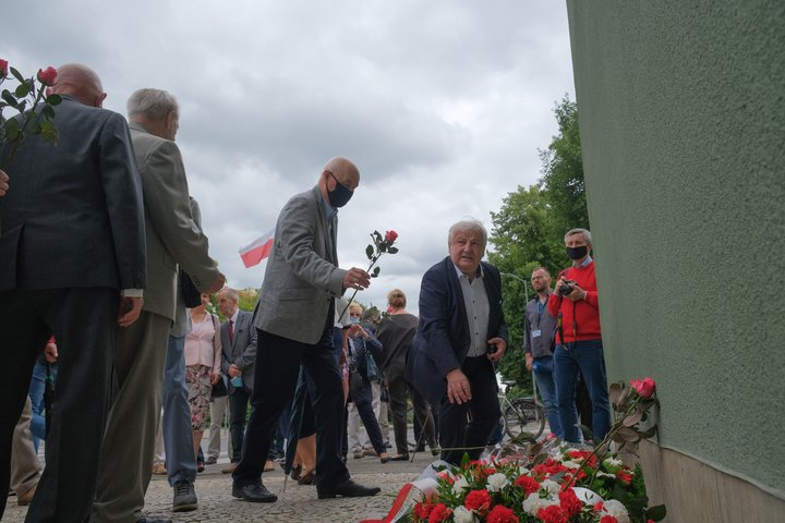 W uroczystości uczestniczyło ponad 100 osób, nie tylko starszego pokolenia. Niemal wszyscy z wiązankami kwiatów, z różami, które później zostały złożone u stóp tablicy.