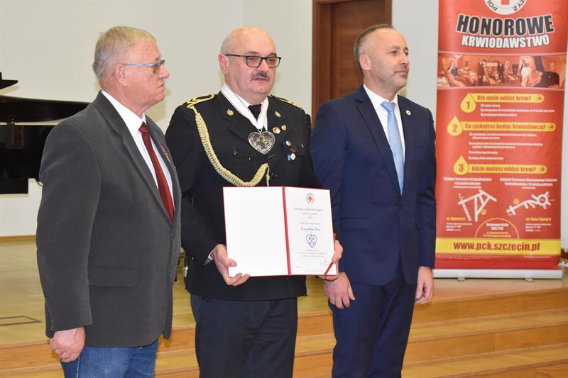 Podczas uroczystości uhonorowano działaczy ruchu krwiodawstwa, krwiodawców i osoby wspierające. M.in. za wybitne zasługi w rozwoju honorowego krwiodawstwa, Grzegorz Szymański, prezes zarządu Zachodniopomorskiego Oddziału Okręgowego Polskiego Czerwonego Krzyża w asyście członka PCK Jerzego Bochenka, Kryształowe Serce wręczyli Ryszardowi Sikorze, prezesowi klubu HDK PCK Strażak z Goleniowa.