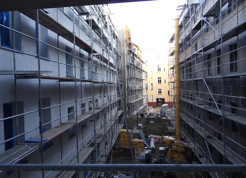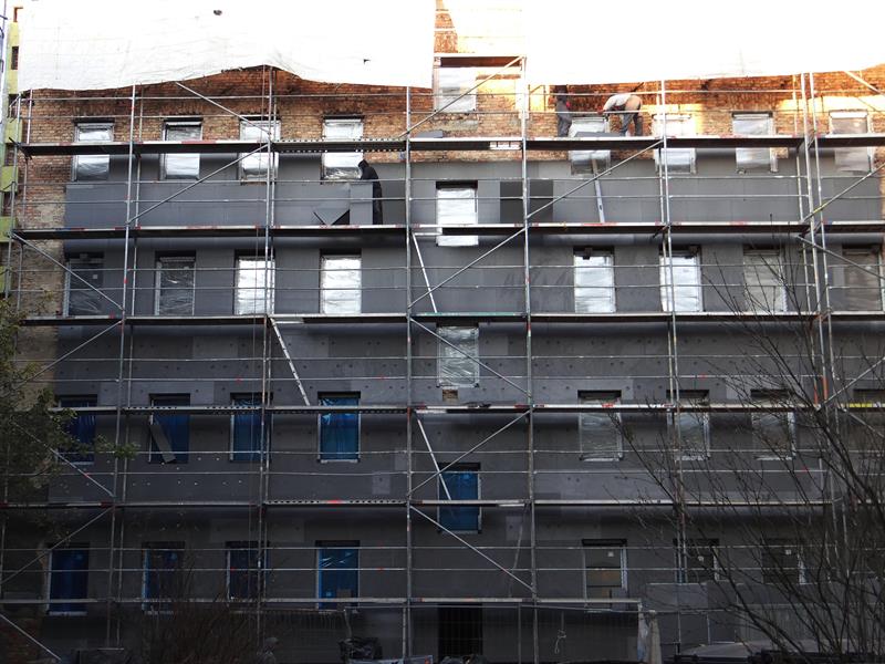 Zakończono w nich prace izolacyjne ścian piwnicznych wraz z wykonaniem iniekcji, docieplono ściany zewnętrzne, zakończono montaż okien i parapetów zewnętrznych, prace izolacyjne stropu nad piwnicą oraz stropu nad ostatnią kondygnacją, przy nowych pokryciach dachowych z obróbkami blacharskimi, montaż rynien i rur spustowych. Ponadto nowe warstwy stropowe oraz posadzki z płytek i paneli podłogowych. W mieszkaniach są gotowe instalacje: elektryczna, centralnego ogrzewania, ciepłej i zimnej wody, teletechniczne. Zakończyły się też roboty malarskie, przy montażu drzwi wejściowych oraz ościeżnic i drzwi wewnętrznych w mieszkaniach, klejeniu płytek ściennych i podłogowych w łazienkach, przy montażu instalacji węzła cieplnego. Trwają teraz prace przy montażu armatury i urządzeń sanitarnych w lokalach, a w częściach wspólnych związane z pionami instalacji c.o., wody, wentylacji hybrydowej, elektrycznych i oświetlenia, malowanie ścian i stropów klatki schodowej.