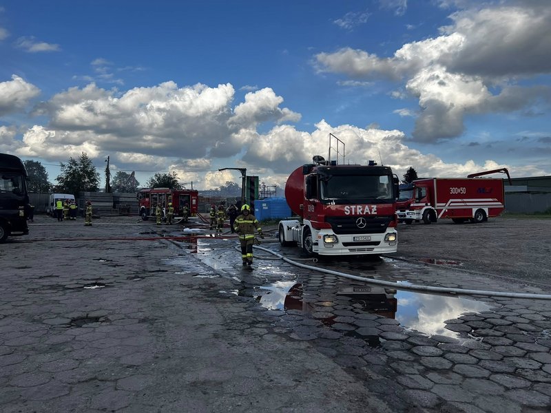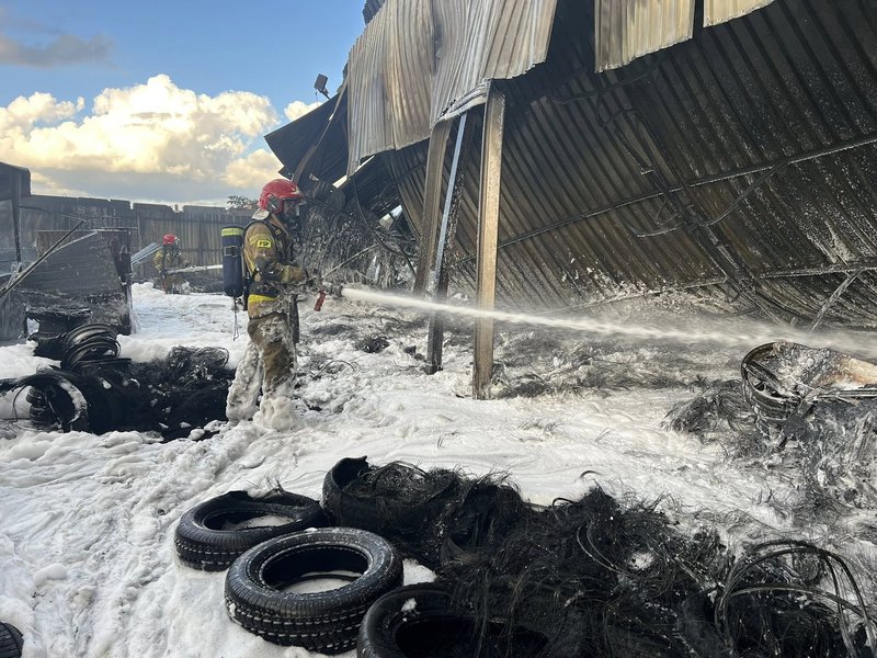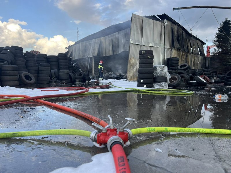 Strażacy podali też więcej szczegółów dotyczących samego pożaru. Jak się okazuje ogień objął blaszaną halę, w której zlokalizowany był zakład wulkanizacyjny oraz składowane na zewnątrz opony.