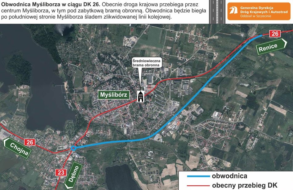 Został ogłoszony przetarg na budowę obwodnicy Myśliborza w ciągu drogi krajowej nr 26 o długości 3,4 km.