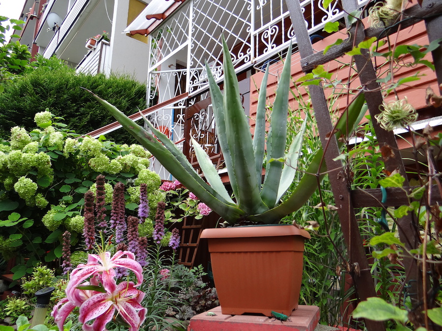 Dlatego cały ogród pełen jest perłowych liści, szklanych motyli, gdzie elfy mają swój gliniany domek przy skalniaku. Natknąć się tu też można na węża, ale – bez obaw – rzeźbionego w drewnie. Na rabatach hortensje, róże, piwonie, tulipany, rododendrony, irysy, dalie, świerczek, tuje, funkie białe i fioletowe, bambus, bukszpan, storczyk ogrodowy, oleander, jodła koreańska. Obok 16-letniej magnolii znalazło się miejsce także dla brzoskwini, kalinę, a w kąciku wypoczynkowym na kiwi miniaturkę prowadzoną w formie piennej.