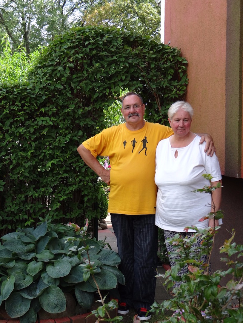 Na zdjęciach: Krystyna i Jan Kaźmierscy oraz ich goście w przyblokowym ogrodzie z bajek i z baśni przy ul. Czerwonej w Szczecinie.
