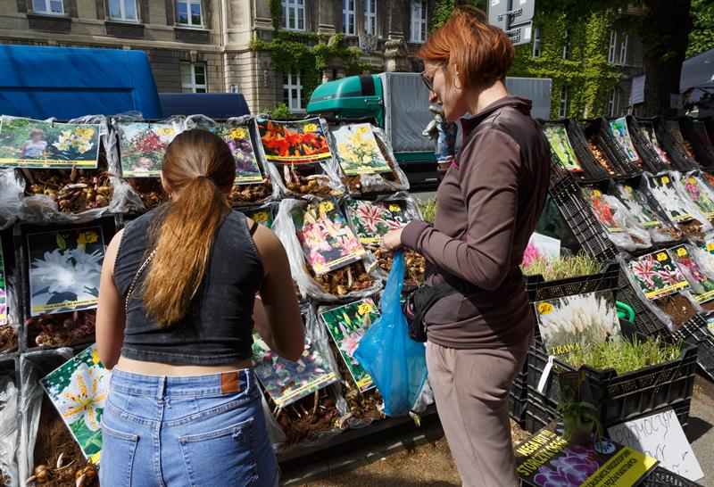 Nie tylko pp. Iwonę i Krystiana wciągnął wir ogrodniczego kiermaszu ph. „Pamiętajcie o ogrodach". Wały Chrobrego właśnie przeżywają istne oblężenie. Nie tylko za sprawą pasjonatów zieleni, poszukujących sezonowych kwiatów, krzewów i drzew owocowych, czy egzotycznych roślin. Na blisko stu stoiskach można przebierać i wybierać także sadzonki warzyw, smakować sprzedawanych na kilogramy truskawek i pomidorów, a na słoiki - miodów z rodzimych pasiek.