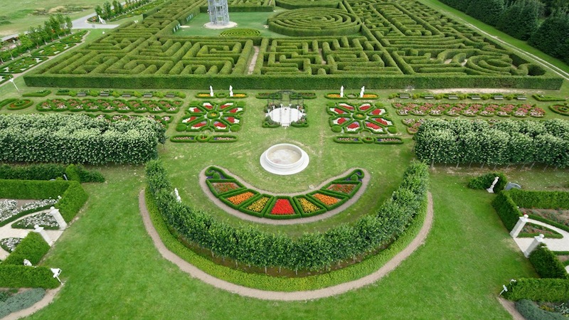 Jest tam aż 28 ogrodów w różnym stylu: japoński, francuski, śródziemnomorski, kamienny, skalny i wodny. Ponadto użytkowe: ziołowy i warzywny, oraz zmysłów: barwa-światło-dźwięk. Ich główną atrakcją jest największy na świecie labirynt grabowy (1 ha). W jego centrum wznosi się prawie 20 -metrowa wieża widokowa w kształcie podwójnej helisy DNA, z której rozpościera się widok na okolicę oraz ogrody, m.in. Kamienny Krąg, Kalendarz Celtycki, rabaty bylinowe, rosaria i partery bukszpanowe. Ciekawym założeniem, tego kompleksu jest nowa grupa ogrodów New Design z Modernistycznym Ogrodem Traw oraz Minimalistyczną Galerią Ogrodową.
