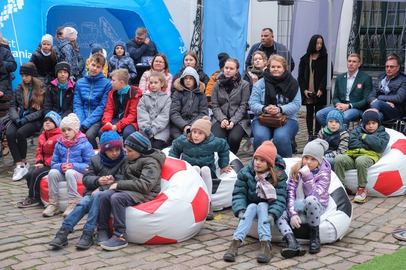 Dla sympatyków sportu, którzy przybyli w sobotnie południe do Zamku Książąt Pomorskich, przygotowano strefę kibica ze studiem sportowym i podium do zdjęć.