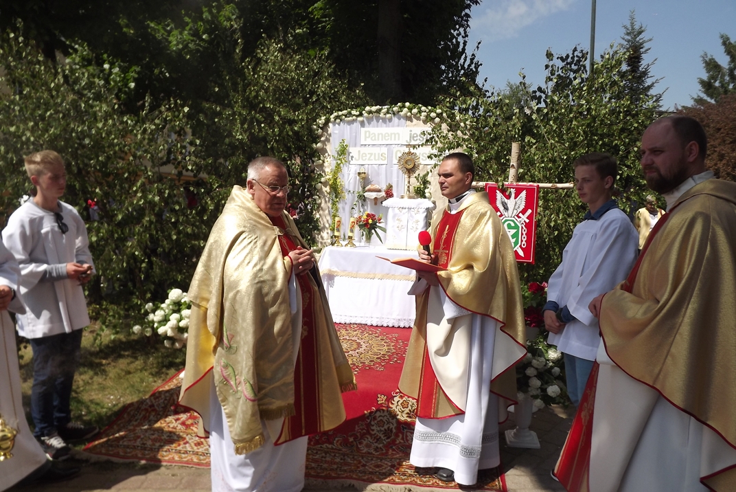 Ołtarze zbudowali: pracownicy magistratu, państwo Irena i Jerzy Kowalczykowie, Sybiracy i kolejarze. W trakcie przejścia ulicami, na rondzie im. Generała Władysława Andersa, okolicznościowego błogosławieństwa udzielił ks. płk Kazimierz Tuszyński, emerytowany kapelan Straży Granicznej.