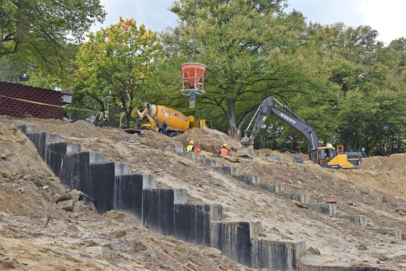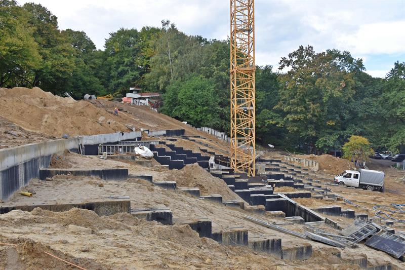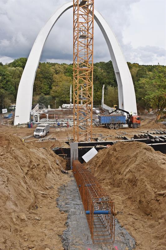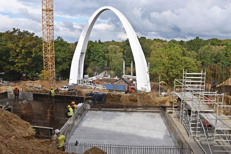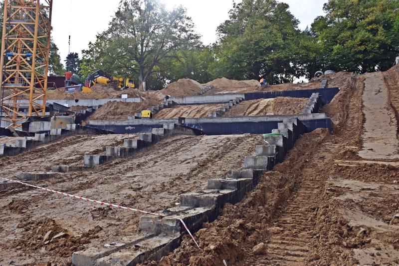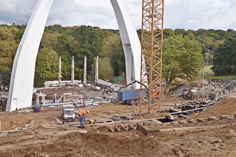 – Na skarpie trwa wykonywanie ław fundamentowych pod budowę przyszłych trybun teatru – zakres aktualnie wykonywanych prac przedstawia Piotr Zieliński z Centrum Informacji Miasta. – Prowadzone są roboty związane z budową zewnętrznych instalacji wodnych i kanalizacyjnych. Charakterystyczny łuk przechodzi prace naprawcze i malarskie. Zdemontowano z niego m.in. pomost techniczny. W najbliższych dniach rozpoczną się prace związane z wykonywaniem pali pod słupy podtrzymujące konstrukcję zadaszenia. Kolejnym etapem robót będzie montaż prefabrykatów trybun.