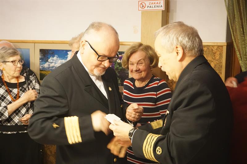 Przecież m.in. kapitan żeglugi wielkiej to funkcja a nie dożywotni zawód. No tak, ci ludzie pamiętają te czasy: mój mąż z zawodu jest dyrektorem...a tu: mój mąż z zawodu jest kapitanem...Czy nie jest przesadą noszenie munduru przez osobę, która tej funkcji już nie pełni? No chyba, że to bal przebierańców i jeszcze ten komiczny strój z 4 belkami i...krzyżem. Przecież to jest zwykłe spotkanie emerytów i rencistów, którzy kiedyś pracowali na morzu i tylko tyle.