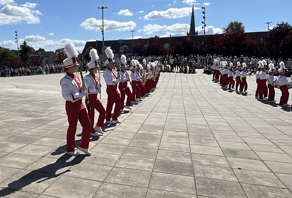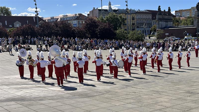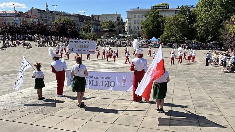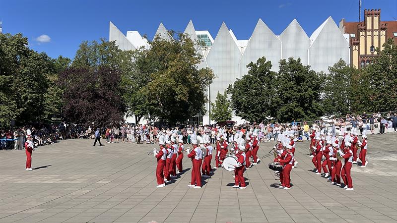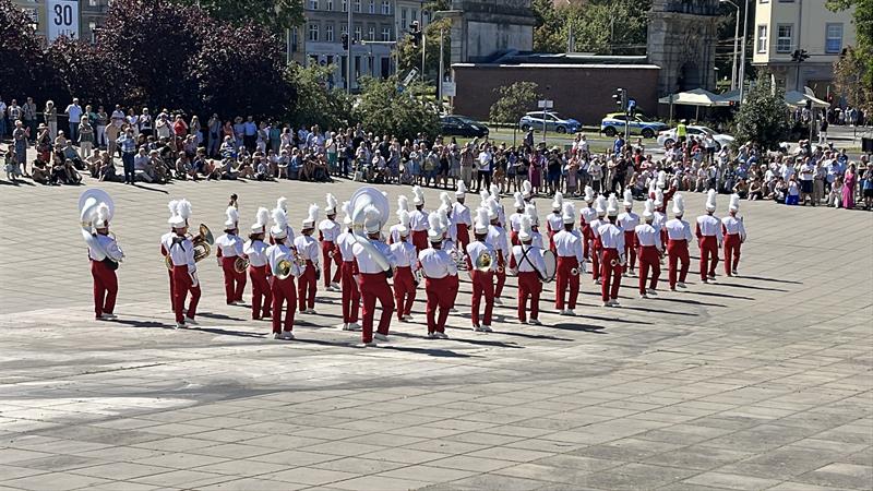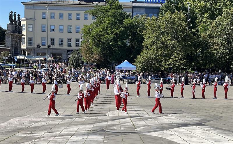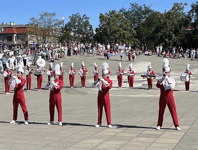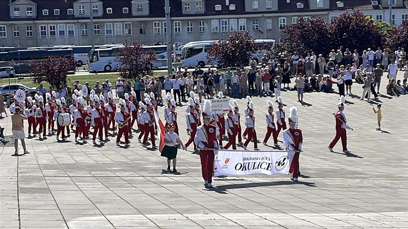Zespoły biorące udział w Festiwalu Orkiestr Dętych o Puchar Prezydenta Miasta w niedzielę zaprezentowały musztrę na pl. Solidarności w Szczecinie.