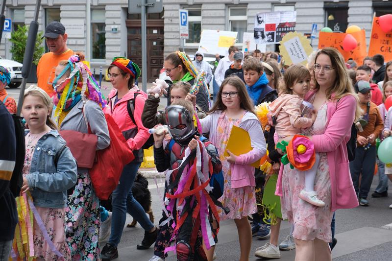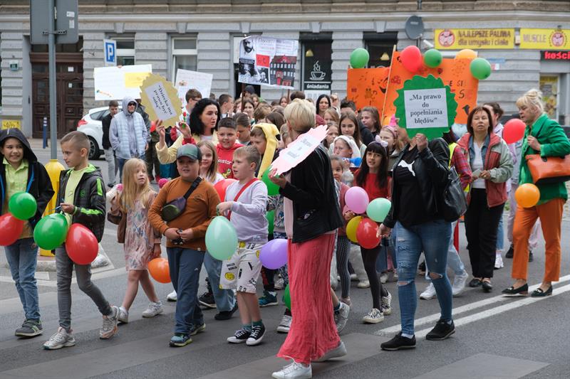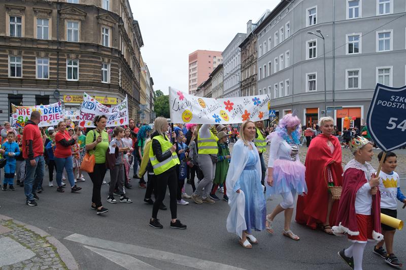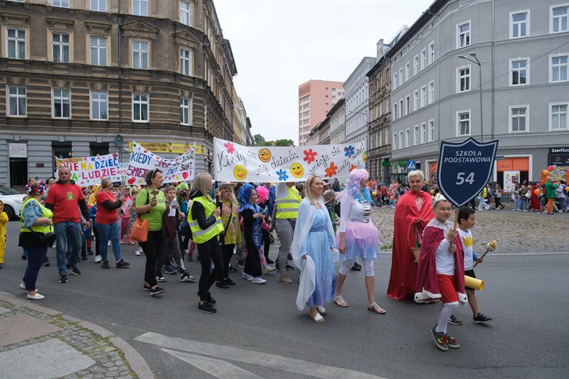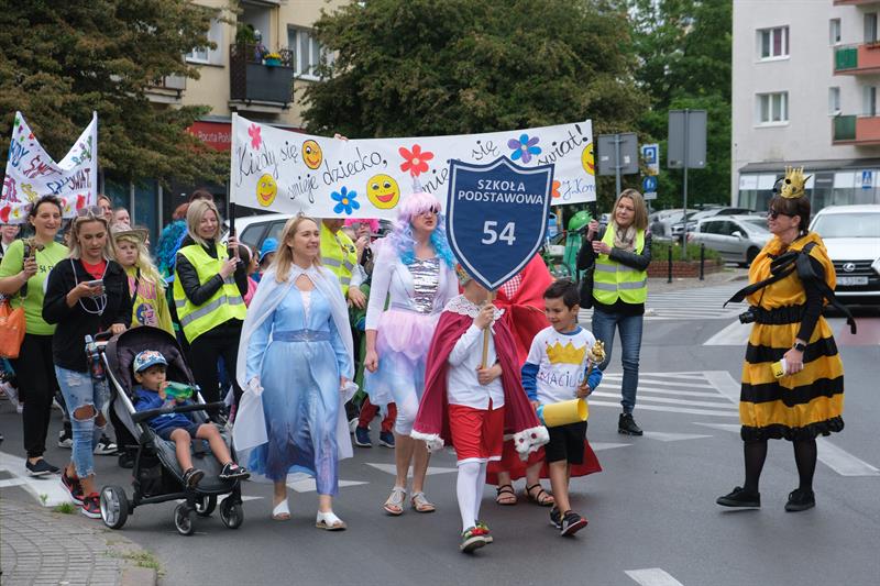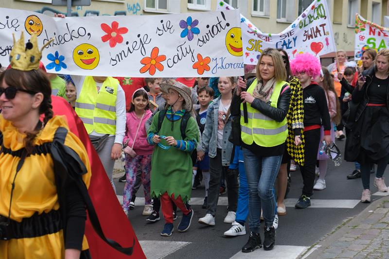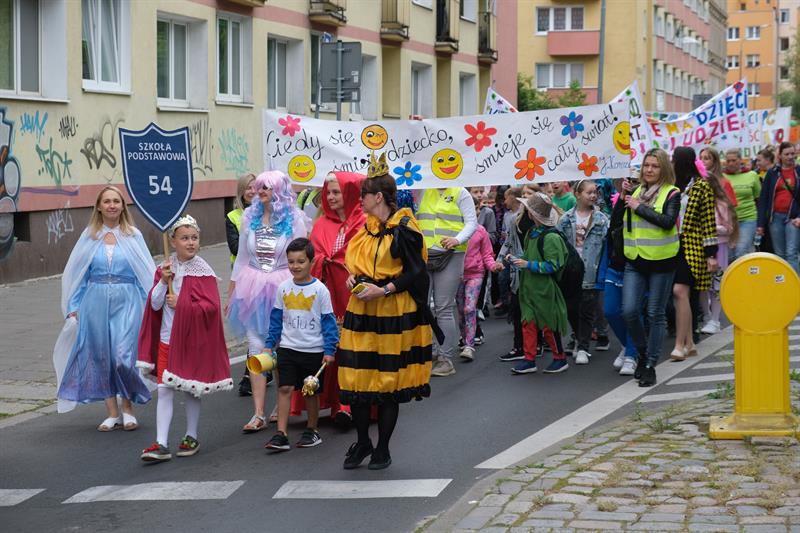"Jest w Szczecinie taka szkoła, Maciuś, Maciuś się na nią woła" - skandowali uczniowie szczecińskiej Szkoły Podstawowej nr 54 im. Janusza Korczaka w barwnym pochodzie z okazji Dnia Dziecka, który jest również świętem patrona placówki. Kolorowy korowód dzieci, ich rodziców i nauczycieli przeszedł ulicami centrum miasta - od ul. Mazurskiej, przez pl. Grunwaldzki, al. Papieża Jana Pawła II, pod magistrat. Tu przywitał ich prezydent Piotr Krzystek i Lidia Rogaś, zastępca prezydenta miasta. Na czele orszaku nie zabrakło oczywiście króla Maciusia I, bohatera książki Janusza Korczaka, a za nim szli poprzebierani w bajkowe stroje uczniowie od klas I do VIII - z hasłami i transparentami przypominającymi, że dzieciom należy się szacunek.